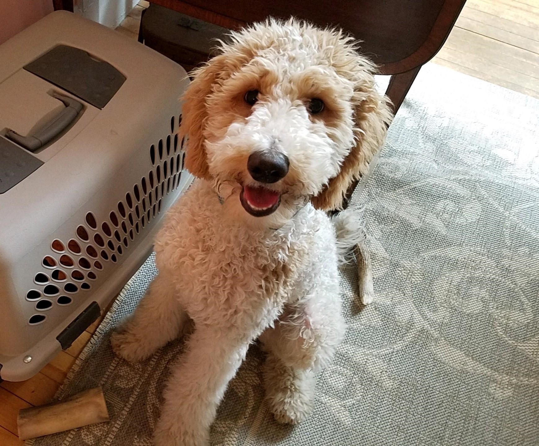 Millie is the daughter of Phoebe and Marco from their first litter together. This sweet and playful Aussiedoodle, like her friend Silas, would love nothing more than to play fetch, and it is her mission to catch every throw before it hits the ground (and she usually succeeds). Once the game ends, she just loves to be near her people. This smart and inquisitive girl always enjoys making new friends of both the dog and human variety and, with her ball, enjoys each new adventure.